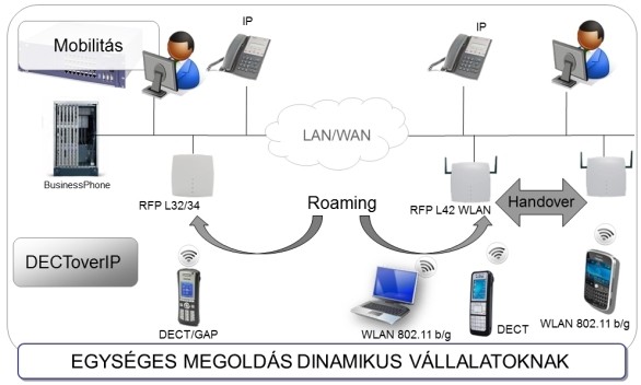 A DECToverIP megoldás lehetővé teszi a DECT mobilitást IP alapú hálózaton. A hang és adat konvergenciájának egy közös infrasturktúrában és hálózatban történő alkalmazása újrarajzolja az alközponti piacot.